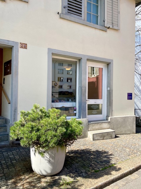 From Bellevue or Stadelhofen, walk to the tram stop “Opernhaus.” Take tram no. 2 or no. 4 for one stop to the “Kreuzstrasse” stop. From there, take the second street on the left, called Mühlebachstrasse, which merges into Ottenweg. At the corner on the left is the entrance to the practice (glass door) at Delphinstrasse 24. My practice is about a 4-minute walk away, approximately 350 meters.